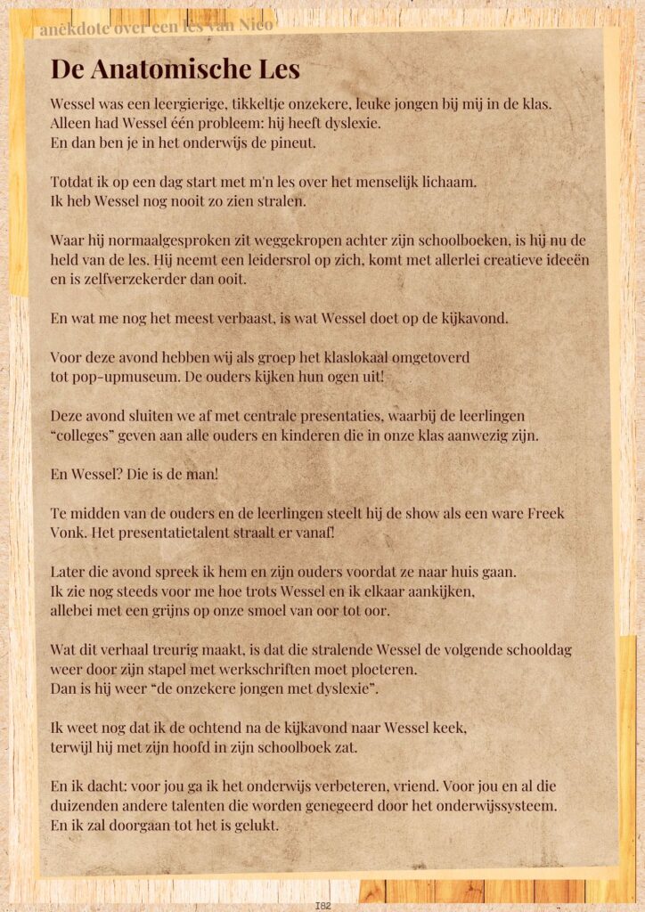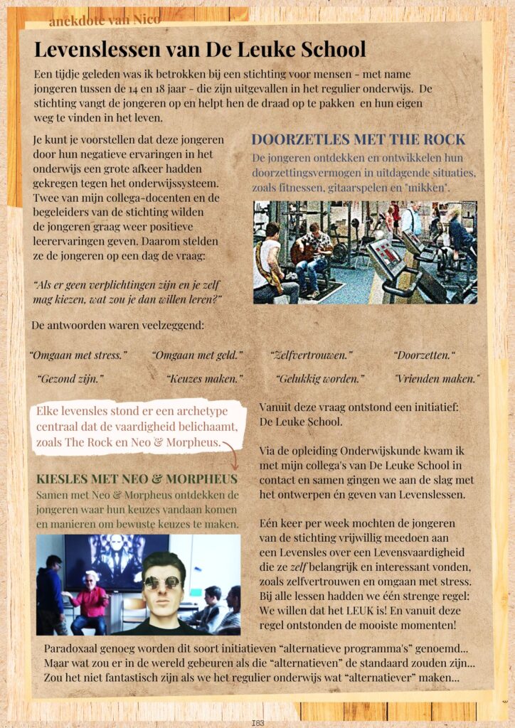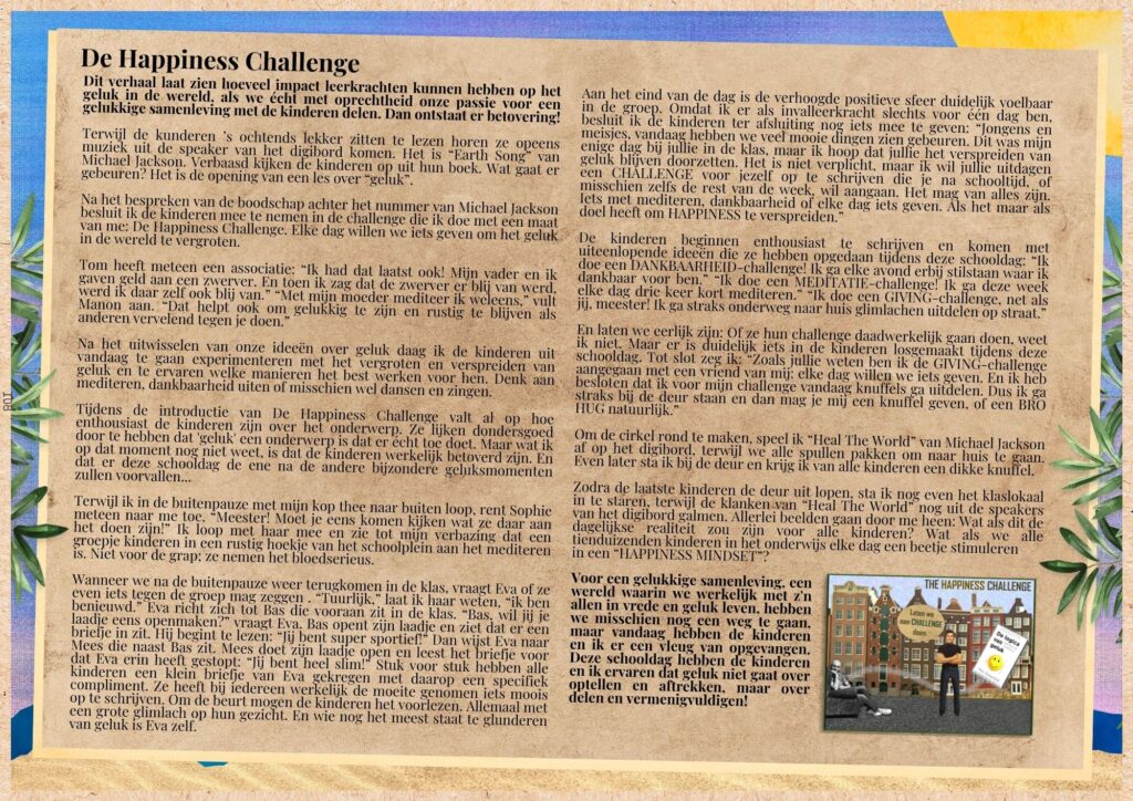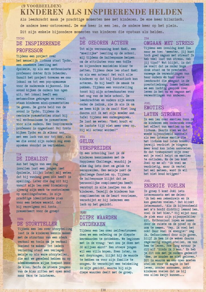 Met deze LESINSPIRATIE deel ik inspirerende lessen en verhalen van mij als leerkracht. Met hoogtepunten zoals een onzekere leerling die opstaat als de held van de les en een eenvoudige les over geluk die opeens een waanzinnige impact blijkt te hebben op een klas.