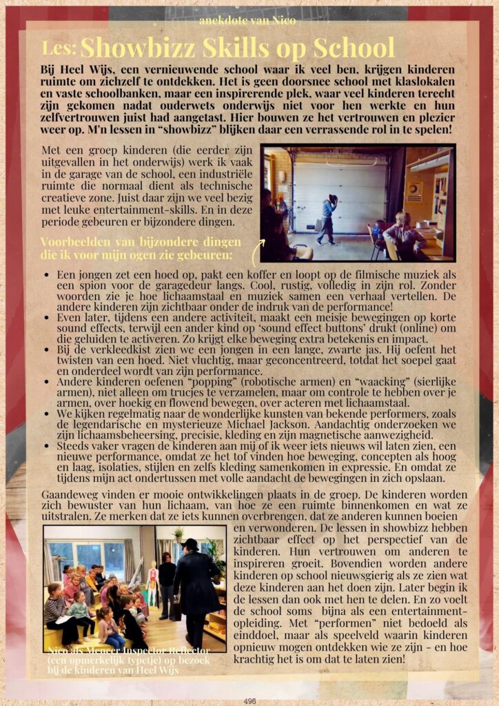 Inmiddels ben ik al jarenlang aan het rondtrekken langs scholen om inspirerende lessen te geven over essentiële onderwerpen, zoals storytelling, acteren, musiceren, geluk, emoties, ondernemen, autodidactiek, wereldverbetering en oude wijsheid. Daarbij maak ik altijd fantastische momenten mee, die ik graag met je wil delen!